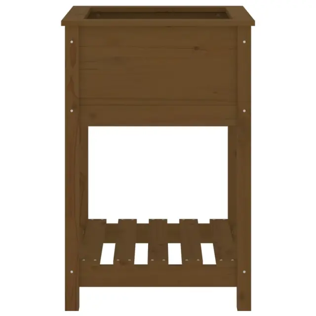 Cvetlični Lonec - Visoka greda s polico medeno rjava 54x54x81 cm trdna borovina