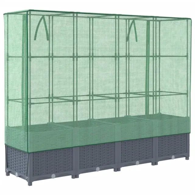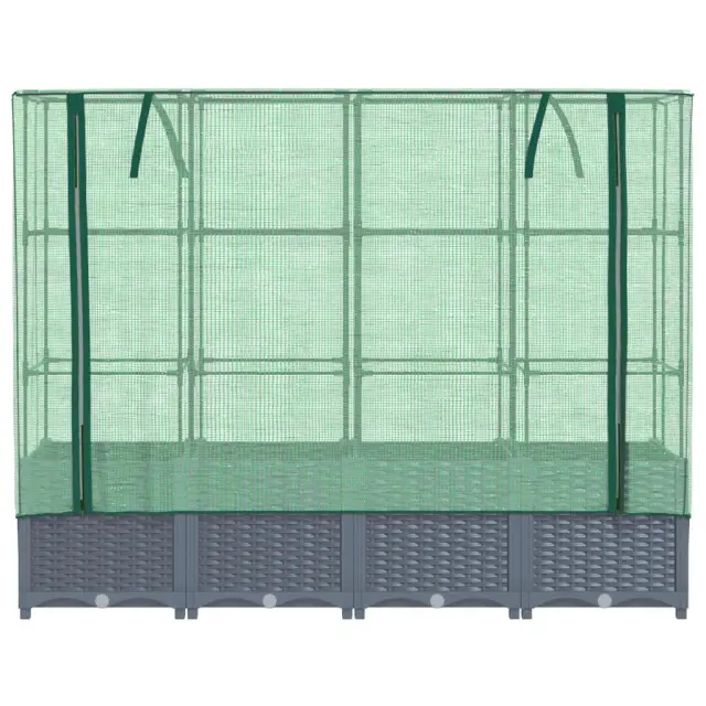 Cvetlični Lonec - Visoka greda s prevleko za rastlinjak videz ratana 160x40x138cm