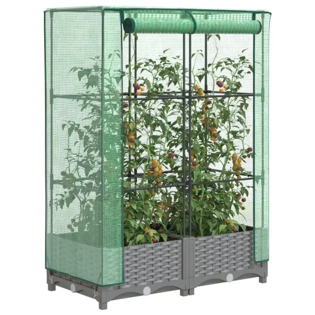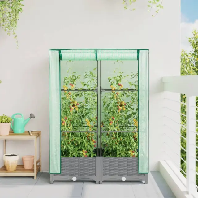 Cvetlični Lonec - Visoka greda s prevleko za rastlinjak videz ratana 80x40x123 cm