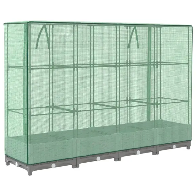 Cvetlični Lonec - Visoka greda s prevleko za rastlinjak videz ratana 160x40x123cm
