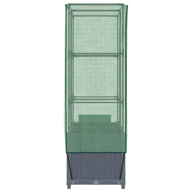 Cvetlični Lonec - Visoka greda s prevleko za rastlinjak videz ratana 80x40x138 cm
