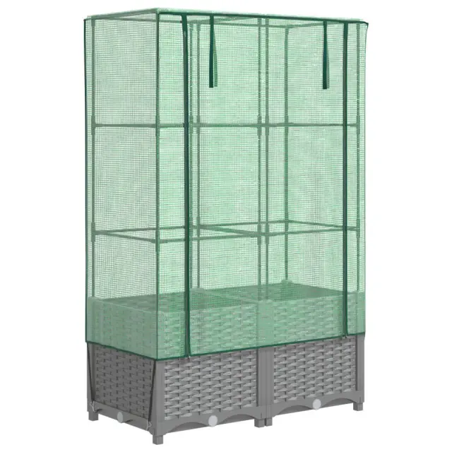 Cvetlični Lonec - Visoka greda s prevleko za rastlinjak videz ratana 80x40x138 cm