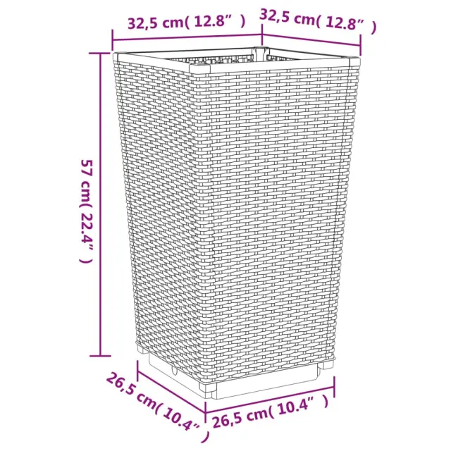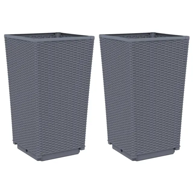 Cvetlični Lonec - Vrtna cvetlična korita 2 kosa siva 32,5x32,5x57 cm PP