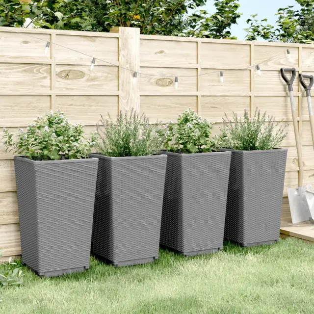 Cvetlični Lonec - Vrtna cvetlična korita 4 kosi svetlo siva 32,5x32,5x57 cm PP