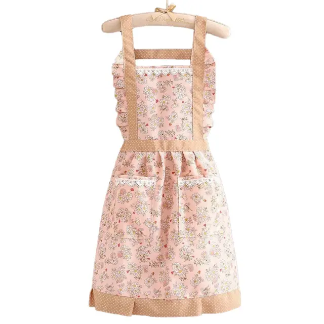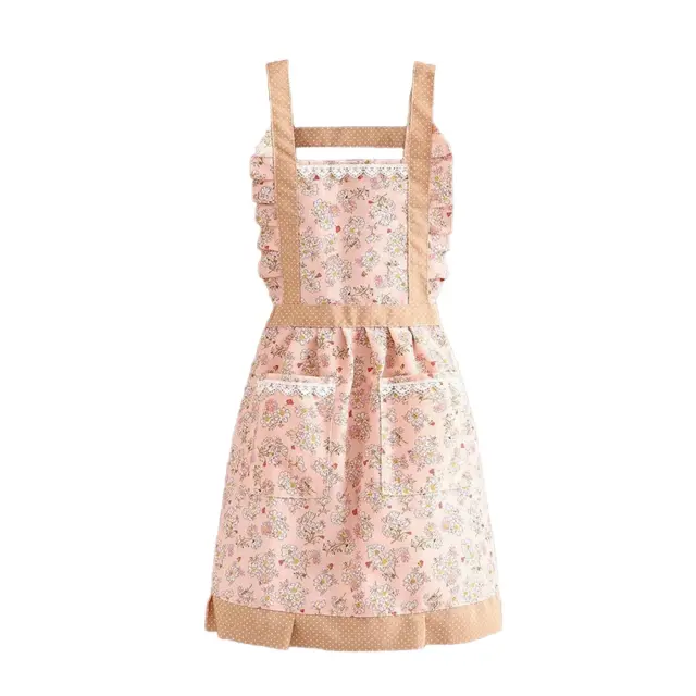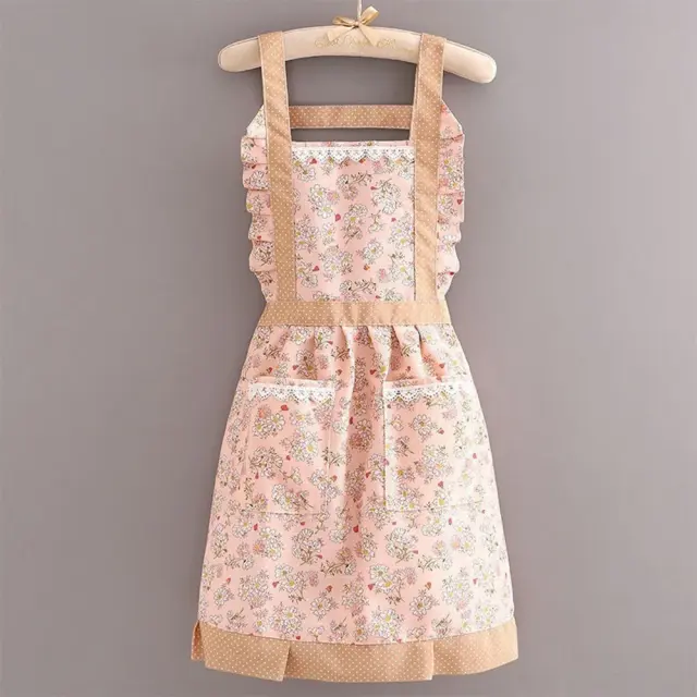 Cvetlični predpasnik iz platna v stilu princeske - Zračen kuhinjski predpasnik Pink