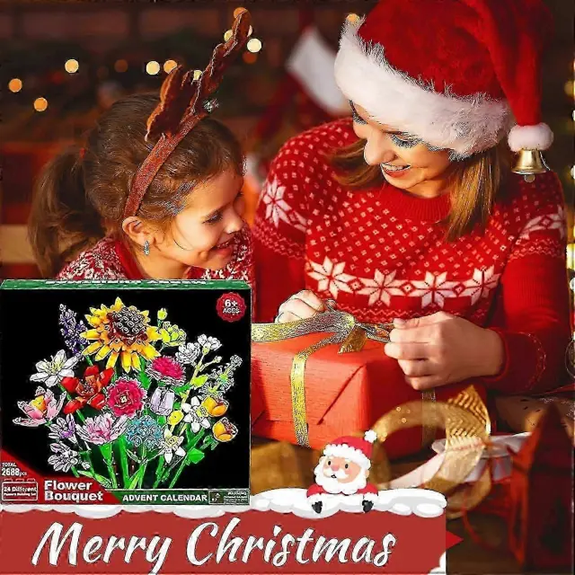 Cvetlični šopek Blocks Božični adventni koledar 2024, Božič 24 dni Sončnični šopek Blind Box