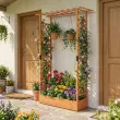 Navpično vrtnarjenje vse v enem: Ta dvignjena greda 2 v 1 združuje veliko škatlo za sadike, visečo streho in rešetko, ki je idealna za podporo plezalnim rastlinam, viseči trti, bujni zelenjavi ali visečim košaram, hkrati pa vaši terasi ali vrtu doda eleganten dekorativni element.