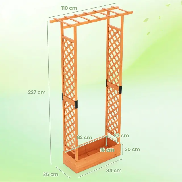 Naša dvignjena greda je izdelana iz trpežnega naravnega smrekovega lesa, ki zagotavlja trpežnost in varnost ter površino brez razpok. Številne drenažne luknje zagotavljajo zdravo zračenje korenin, medtem ko odstranljive spodnje plošče zagotavljajo dodatno prilagodljivost za rastline z globokimi koreninami ali večje pridelke. Izboljšajte svojo teraso, balkon ali vrt s privlačno navpično zasaditvijo - kot nalašč za predstavitev bujne zelenjave, pisanega cvetja in plezajoče trte v velikem zabojniku, dvojni rešetki in praktični viseči strehi.