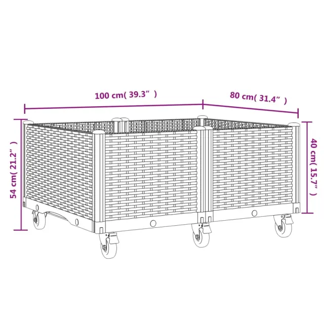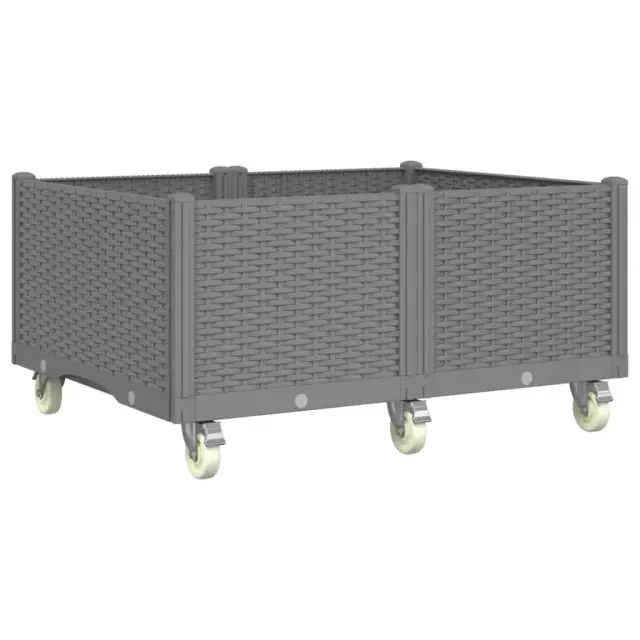 Cvetlično korito - Lonček za rože s kolesi svetlo sivo 100x80x54cm PP