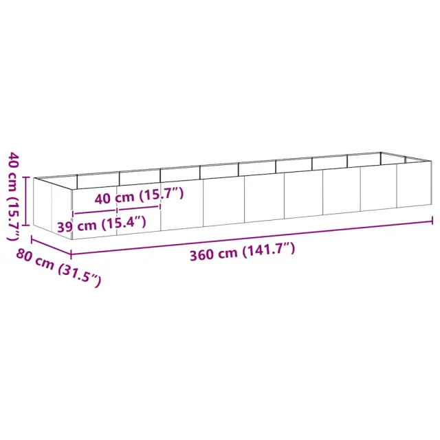 Cvetlično korito - Lonček za rože olivno zeleno 360x80x40 cm jeklo