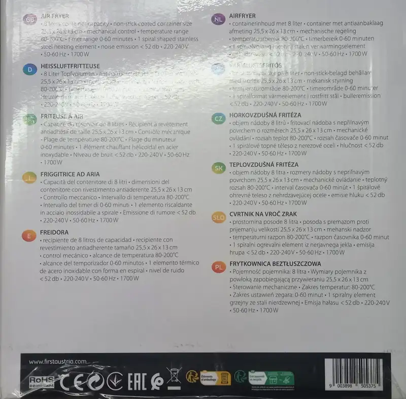 Cvrtnik na vroč zrak FIRST FA-5053-7, 8L, 1700W