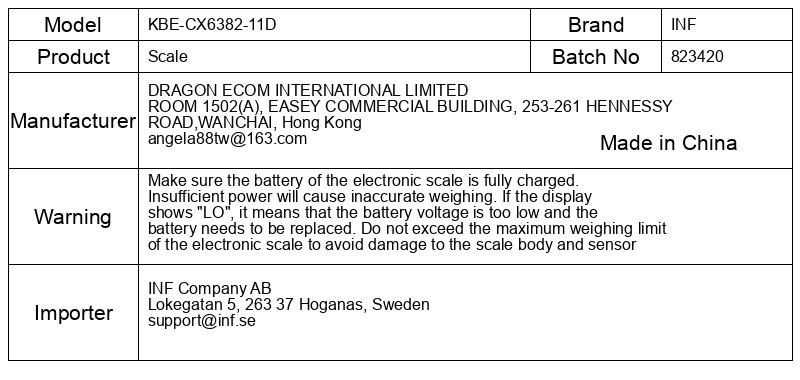 Prepričajte se, da je baterija elektronske tehtnice popolnoma napolnjena. Nezadostna moč bo povzročila netočno tehtanje. Če se na zaslonu prikaže "LO", to pomeni, da je napetost baterije prenizka in je treba baterijo zamenjati. Ne prekoračite največje meje tehtanja elektronske tehtnice, da preprečite poškodbe ohišja tehtnice in senzorja