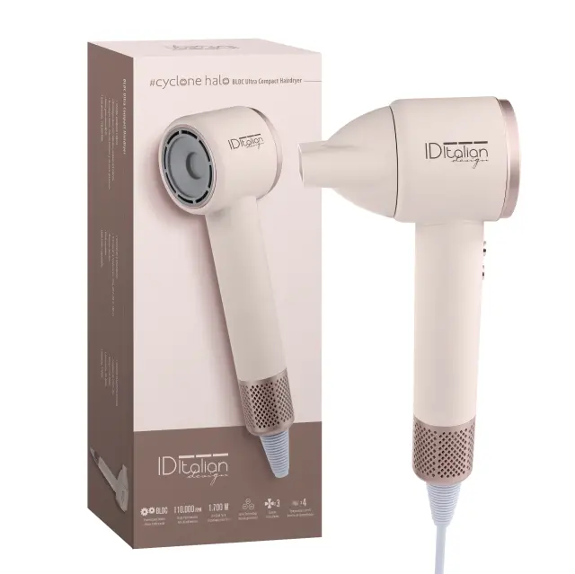 Cyclone HALO BLDC ULTRA COMPACT je bil zasnovan za večje udobje in vzdržljivost. Njegov odstranljiv filter olajša čiščenje in podaljšuje življenjsko dobo motorja, mehak na dotik pa zagotavlja vrhunski občutek pri držanju las. Vključuje enostavno pritrdilno magnetno šobo in vrvico.“ 60 cm za popolno svobodo gibanja. Vse to v elegantni in funkcionalni obliki, ki dokazuje, da lahko moč in nega las gresta z roko v roki, tudi v tako kompaktni velikosti.