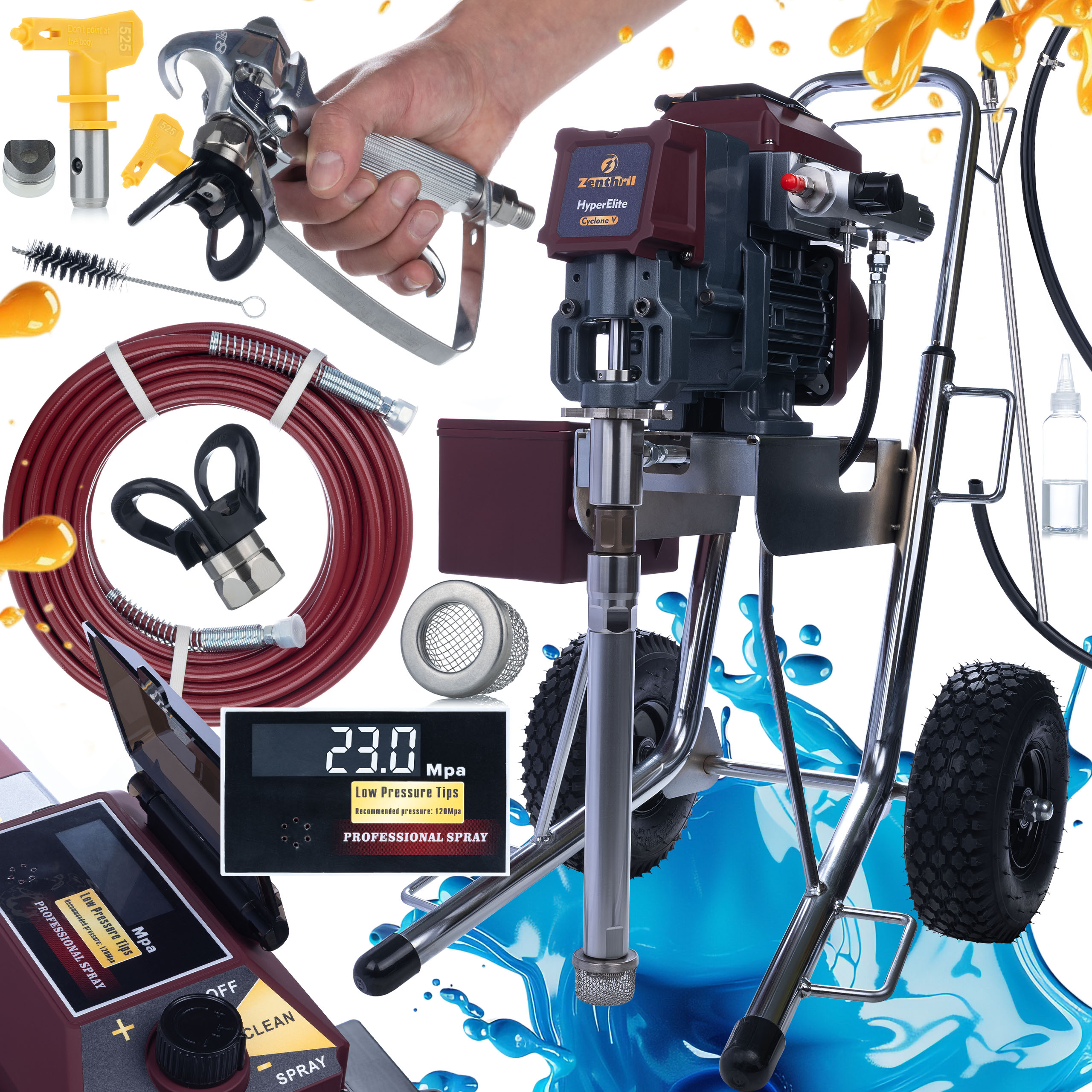 ✔️ Razpršilnik barve Zenthril Cyclone V, 2500 W, 25 MPa, 0,031", 3,5 l/min, serija HyperElite