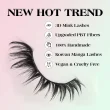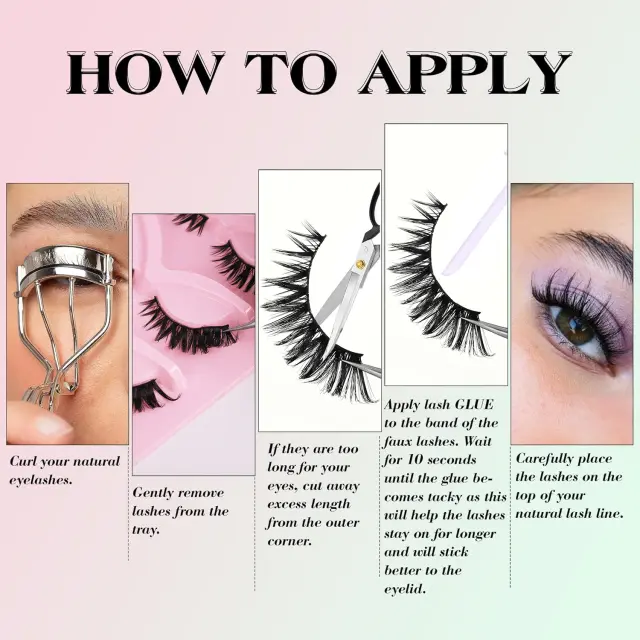 Udobne in za večkratno uporabo: Te trepalnice so izdelane iz mehkih in udobnih materialov in so na vekah izjemno lahke. Prilagodljiv trak se prilega vaši edinstveni obliki oči in zagotavlja varno in udobno prileganje brez draženja. S pravilno nego lahko te visokokakovostne trepalnice uporabite večkrat, kar vam zagotavlja izjemno vrednost za vaš denar.