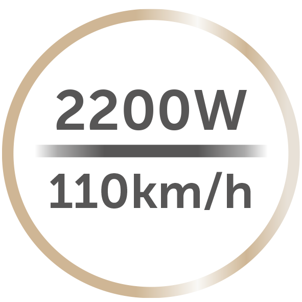 Zmogljiv 2200 W motor v sušilniku za lase Sapphire Luxe ustvarja hitrosti zraka do 110 km/h za hitrejše sušenje in oblikovanje pričeske brez ekstremne vročine.