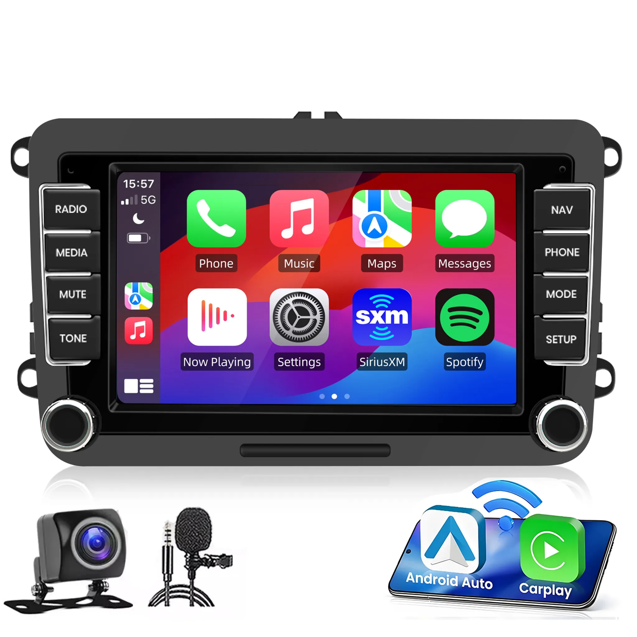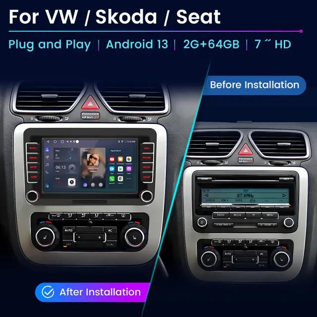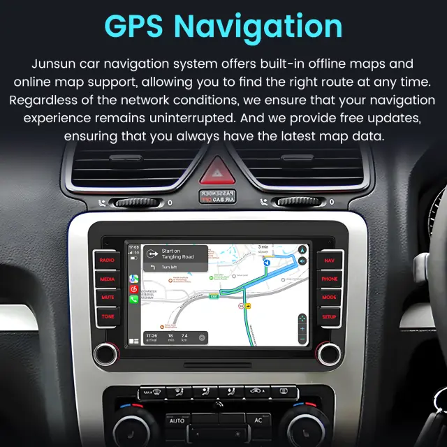 Android Auto in brezžični Carplay: CarPlay je Applov sistem za avtomobile z glasovnim upravljanjem, zasnovan za delo s Siri in iPhonom za prikaz poenostavljene začetne strani na zaslonu na dotik avtomobila, brez uporabe gumbov na zaslonu. S sistemom CarPlay lahko komunicirate tudi s pritiskom na gumb za glasovno upravljanje na volanu. Android Auto poveže vaš telefon Android z našim radiem in prikaže vaše aplikacije Android neposredno na zaslonu. Tippen Sie, um Navigationsanweisungen zu erhalten, verwenden Sie dieingabe, um Textnachrichten zu senden, und tätigen Sie sogar freihändige Anrufe bei Familienmitgliederen. Android Auto je zasnovan tako, da vam pomaga, da se osredotočite na vožnjo in vam olajša potovanje.