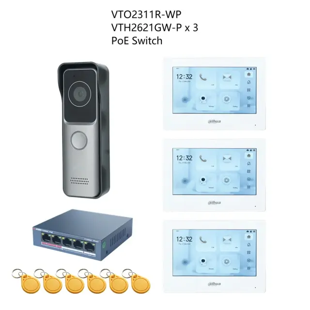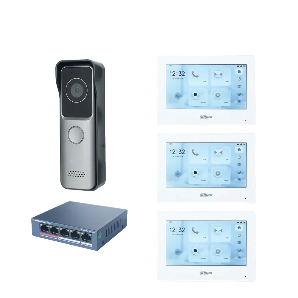 Dahua Video Intercom System, VTO2311R-WP Door Station, PoE Switch Included -1 DB 3 bela zaslon