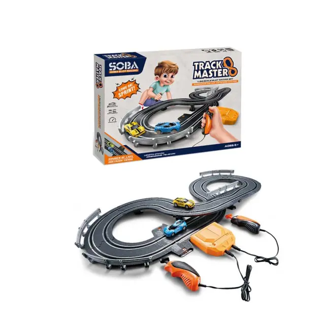 Imate radi dirke? Zdaj imate priložnost doživeti fantastične dirke s to odlično stezo, ki se razteza na 214 cm, več kot 2 nivojih in v več ovinkih. Ta komplet je opremljen tudi z dvema voziloma športnega dizajna, daljinskim upravljalnikom na sami progi z režami za 2 krmilni palici. Pripravite svojo igralno palico in povabite prijatelja na noro dirko.