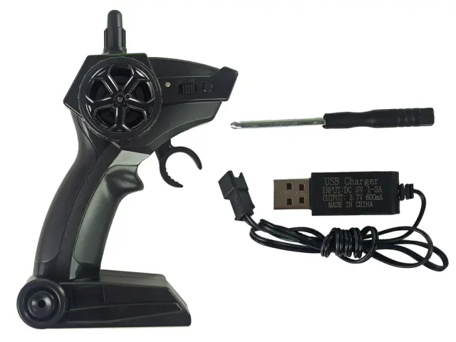 Namenjeno otrokom, starejšim od 8 let. Daljinski upravljalnik napajata 2 kosi 1,5 V AA bateriji – niso priložene, medtem ko ima avto 3,7 V baterije (priložene).