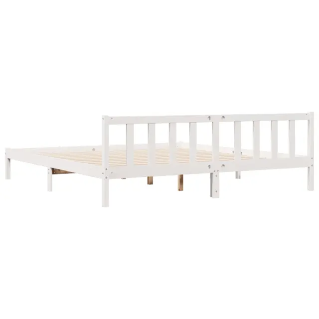 Daljši Posteljni Okvir - Dvoposteljna postelja brez vzmetnice bel 200x220 cm borovina