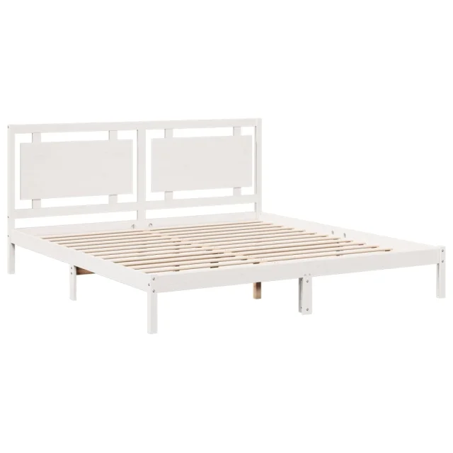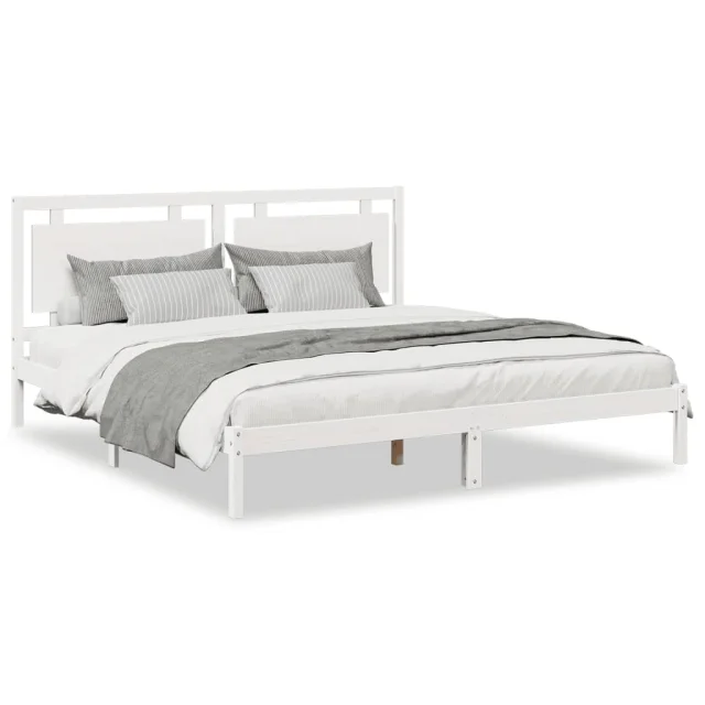 Daljši Posteljni Okvir - Dvoposteljna postelja brez vzmetnice bel 200x220 cm trden les