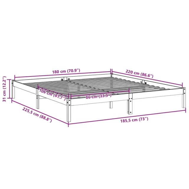 Daljši Posteljni okvir - Dvoposteljna postelja - Zakonska postelja brez vzmetnice 180x220 cm trdna borovina