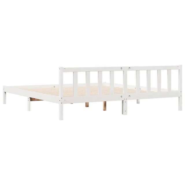 Daljši Posteljni okvir - Dvoposteljna postelja - Zakonska postelja brez vzmetnice bel 180x220 cm borovina