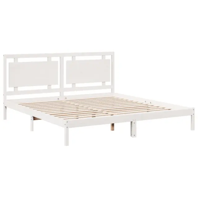 Daljši Posteljni okvir - Dvoposteljna postelja - Zakonska postelja brez vzmetnice bel 200x210 cm trden les