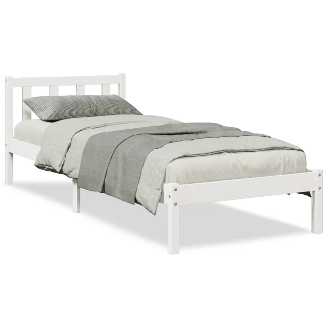 Daljši Posteljni okvir - Enojna postelja - Postelja za odrasle brez vzmetnice bel 90x210 cm borovina