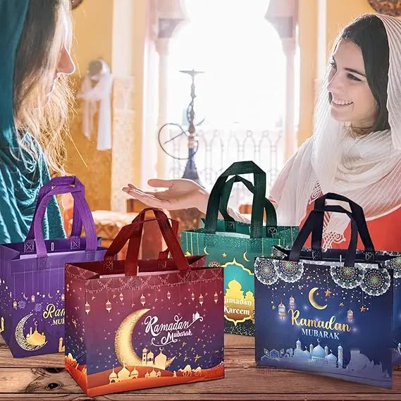 Komplet darilnih vrečk Ramadan Mubarak predstavlja praktično in estetsko rešitev za obdarovanje med muslimanskimi prazniki. Te vrečke so posebej zasnovane za poudarjanje posebnega značaja praznovanj, saj so primerne za shranjevanje sladkarij, piškotov, voščilnic, igrač ali drugih majhnih daril. Izdelane so iz trpežnega materiala, ki omogoča dolgotrajno uporabo pri različnih družinskih srečanjih in verskih praznovanjih. Njihova zasnova združuje tradicionalne motive s funkcionalnostjo, kar zagotavlja, da bo vsako darilo predstavljeno na urejen in spoštljiv način.