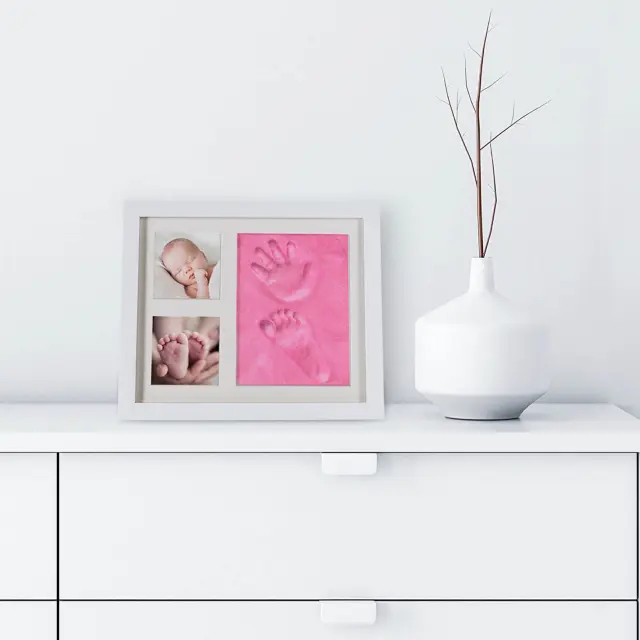 Kako majhne in nežne so bile roke in noge novorojenčka? Kako sladkih in nedolžnih prvih nekaj dni? Po enem letu si pogosto tega ne moreš več zares predstavljati in teh trenutkov potem nihče več ne more ujeti. Zato ovekovečite te čiste trenutke s svojim novorojenčkom tako, da ustvarite zelo individualen komplet okvirjev za fotografije. Z mavčnim odlitkom dlani in stopala ter dvema zelo osebnima otroškima fotografijama.