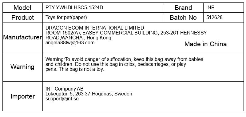 Opozorilo: Da bi se izognili nevarnosti zadušitve, hranite to torbo stran od dojenčkov in otrok. Te vrečke ne uporabljajte v otroških posteljicah, posteljnih vozičkih ali igralih. Ta torba ni igrača.