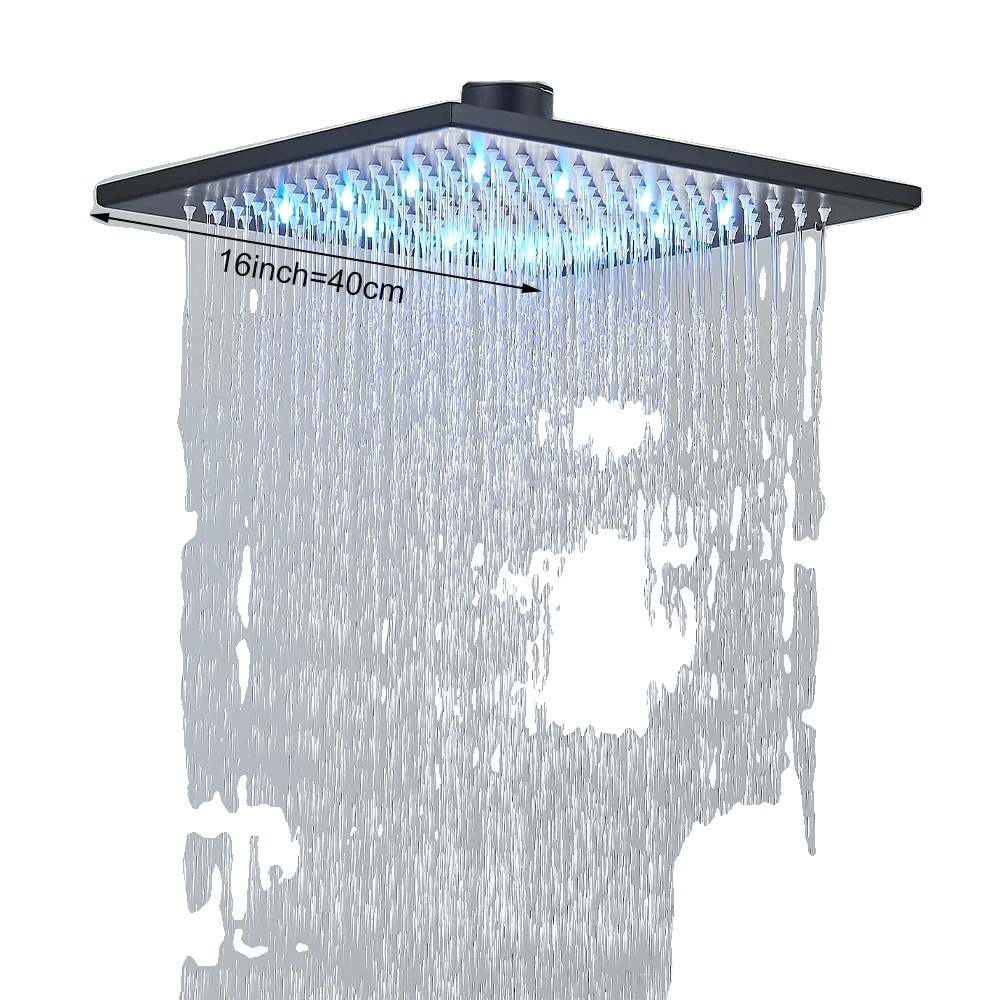 Dážďový sprchový hlavica, 16 palcov, LED zmena farby - Čierna 16 palcov