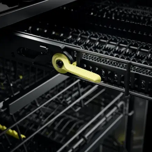 Noži so občutljivi predmeti – prav tako tudi prsti. Zato smo naredili vse, kar je mogoče, da kar najbolje zaščitimo oboje. Naše držalo za nože je posebej globoko, da rezila med pranjem ostanejo stabilna in varna. Držala za nože so nameščena na treh nivojih: v srednji, zgornji in vrhnji košari. Zagotavljamo čisti rez – in varno pranje.