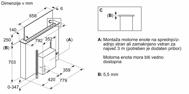 BOSCH Serie 8 DDW88MM65 dvižna pultna napa