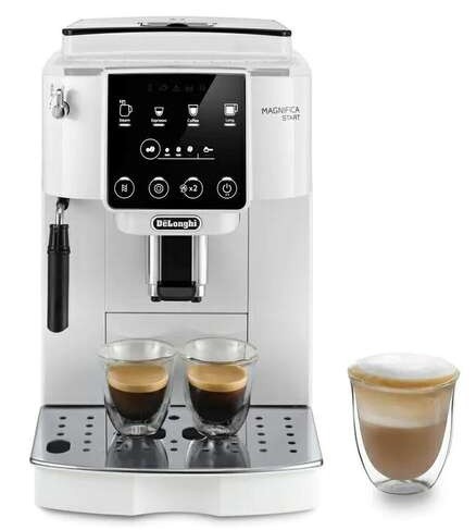Vstopite v svet „od zrna do skodelice kave“ z De'Longhi Magnifica Start in zagotovite vse, kar potrebujete za začetek s svojimi najljubšimi napitki na osnovi espressa doma. Ima uporabniku prijazen vmesnik in privlačno belo končno obdelavo, s prilagojenim izborom napitkov, pripravljenih samo z enim dotikom.