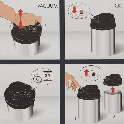 Posoda omogoča vakuumsko zapiranje, kar pomaga ohranjati kavo v idealnem stanju brez izpostavljenosti zraku.
