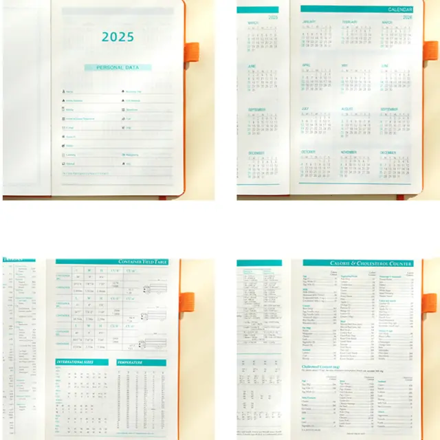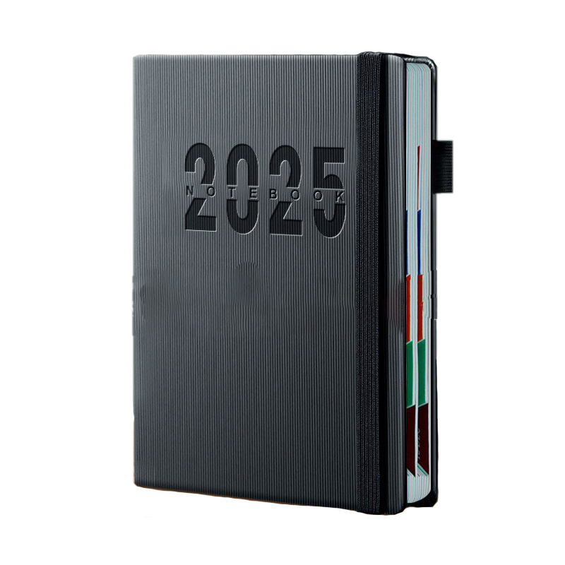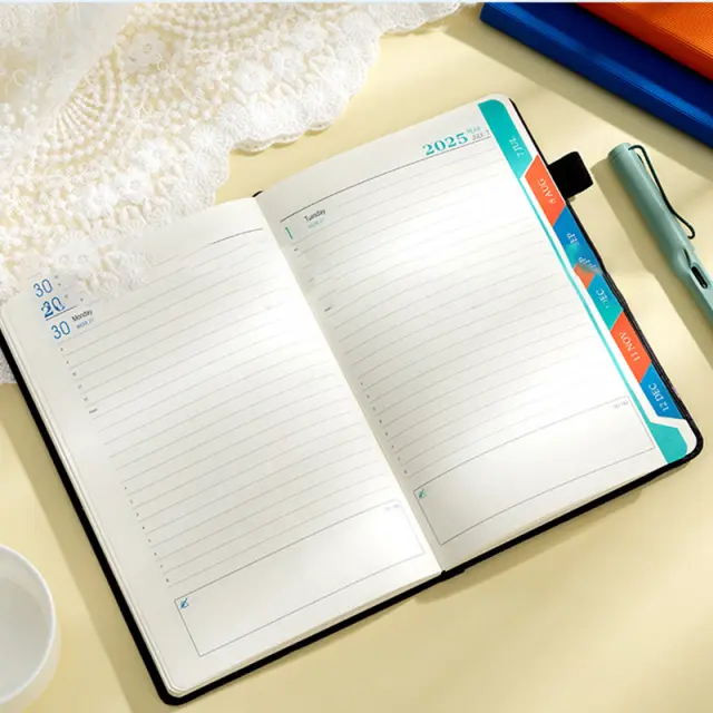 Premium ovitek iz umetnega usnja: Ta zvezek, izdelan iz visokokakovostnega umetnega usnja, ponuja prefinjen videz in občutek, hkrati pa zagotavlja trajno zaščito za vaše zapiske. Mehka platnica je udobna za oprijem in odporna na praske in obrabo, kar zagotavlja, da vaš planer ohrani svoj eleganten videz.