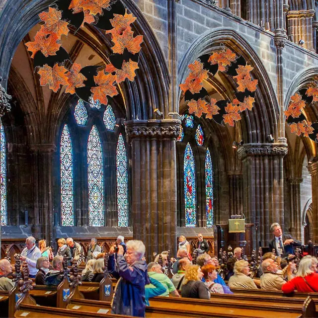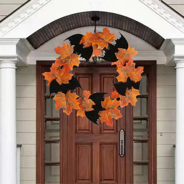 Dekor za noč čarovnic, umetne rože, venec, simulacija venca iz lesene tkanine, večbarvne z javorjem, ki visi na steni