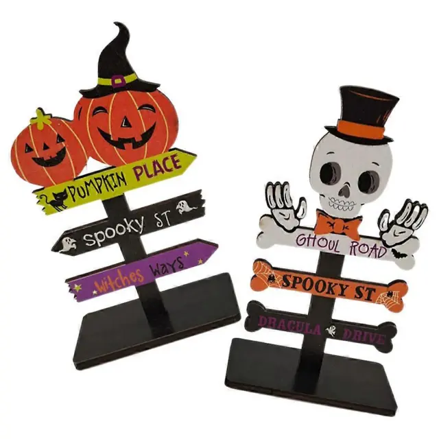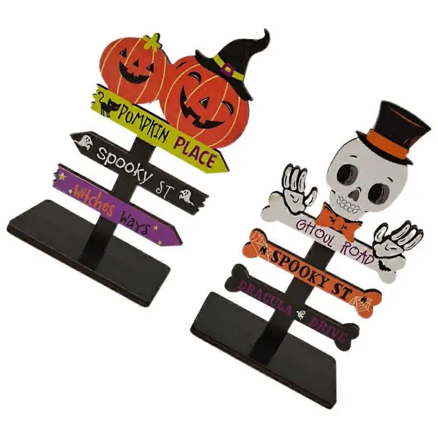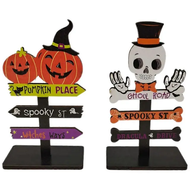 Dekoracija za mizo za noč čarovnic, lesena plošča, dekoracija za zabavo, različne barve, 14 x 8 cm, 2 kosa