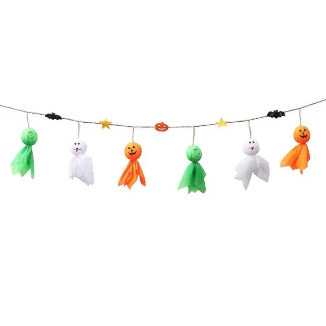 Dekoracija za zabavo za noč čarovnic Ghostly Puppet Doll Bunting Banner Fabric Pena 160x26x3 cm 1 komplet