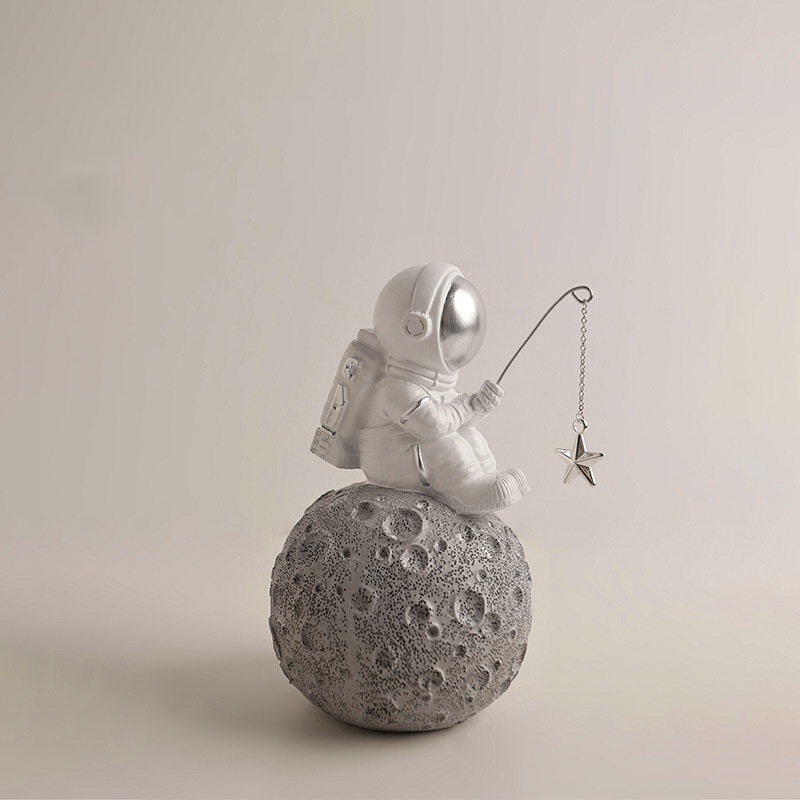 Edinstven in eleganten dizajn: Ta dekorativna figurica astronavta iz smole je zasnovana z edinstveno in elegantno figurico astronavta, ki vaši pisalni mizi ali nočni omarici doda pridih modernega in igrivega šarma.