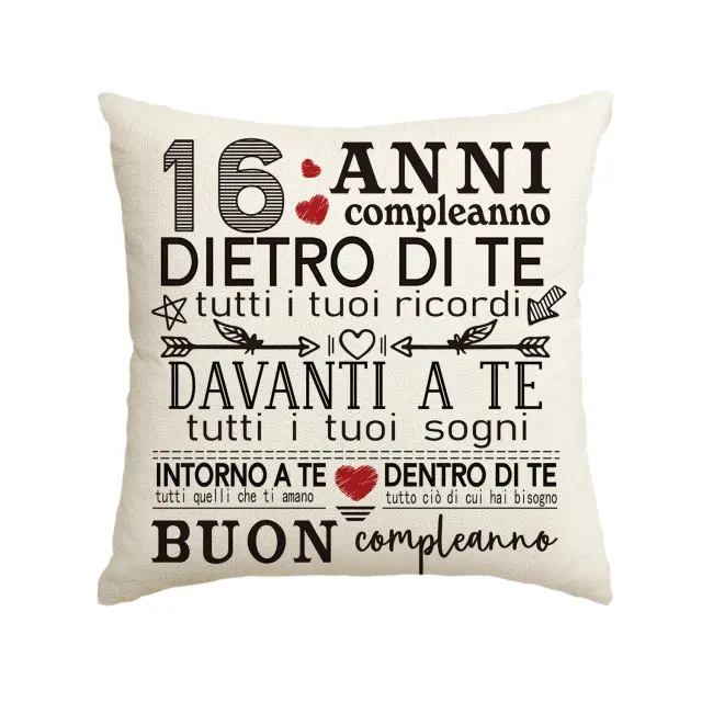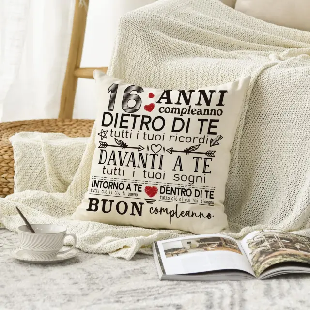 Ta dekorativna prevleka predstavlja idealen način za obeležitev 16. rojstnega dne na eleganten in praktičen način. Izdelek ni le darilo, temveč kakovosten dodatek, ki v prostor vnese osebno noto in sodoben značaj. Zahvaljujoč trdni izdelavi in univerzalni uporabi bo ta dekorativni element dolgo časa razveseljeval vsakega uporabnika. Izberite to unikatno prevleko in polepšajte praznovanje pomembnega življenjskega mejnika.