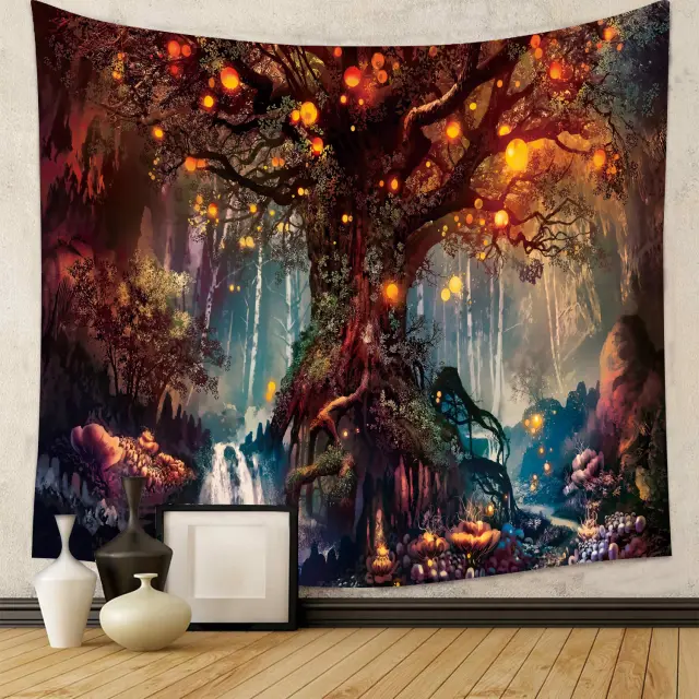 Živahen in umetniški dizajn: Ta tapiserija z osupljivo mešanico barv in abstraktnim dizajnom pokrajine doda pridih narave in umetniški pridih vsaki sobi. Drobne podrobnosti in živahni odtenki ustvarjajo privlačno žarišče, ki povzdigne vašo notranjo opremo.