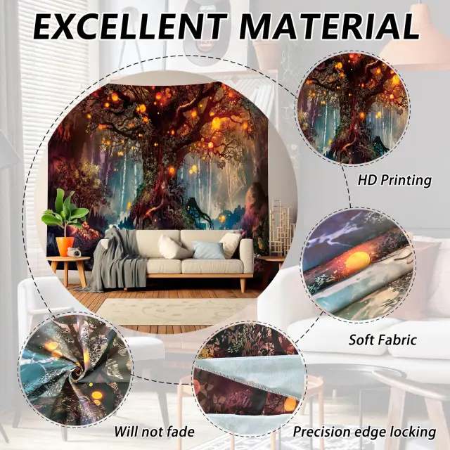 Visokokakovosten material: Ta tapiserija, izdelana iz vrhunske poliestrske tkanine, se ponaša z odličnim padcem in mehko teksturo, ki zagotavlja, da bo lepo visela na vaši steni. Je tudi lahka in enostavna za rokovanje, zato je namestitev enostavna.