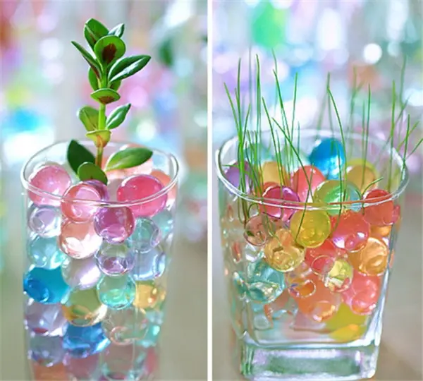 Hidrogel kroglice so primerne za aranžiranje rastlin v vaze, lonce. Hidrogel odlično zadržuje vodo. Zagotavlja ustrezno hidracijo rastlin v vročih dneh ali praznikih. Hidrogel je edinstvena snov, ki zadrži vodo tudi iz megle ali rose in se uporablja na številnih področjih.