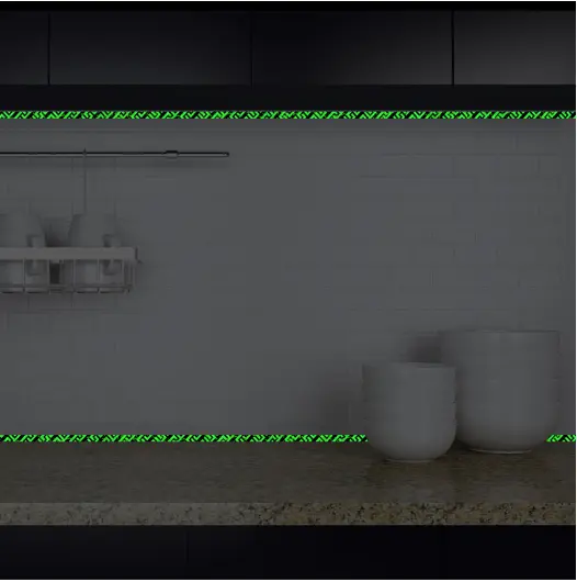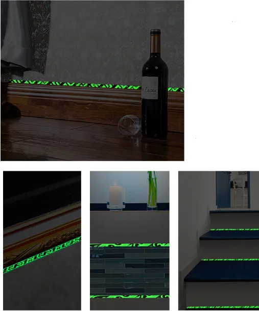 Stenska nalepka je izdelana iz PVC materiala, vodotesen in odporen na vlago. Čez dan je okras za steno, okno, predsobo, tla, medtem ko je ponoči nočna oznaka za znak za izhod, stopnice, stopnice itd.
