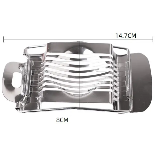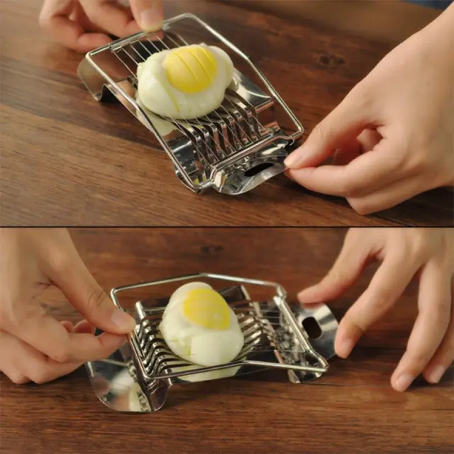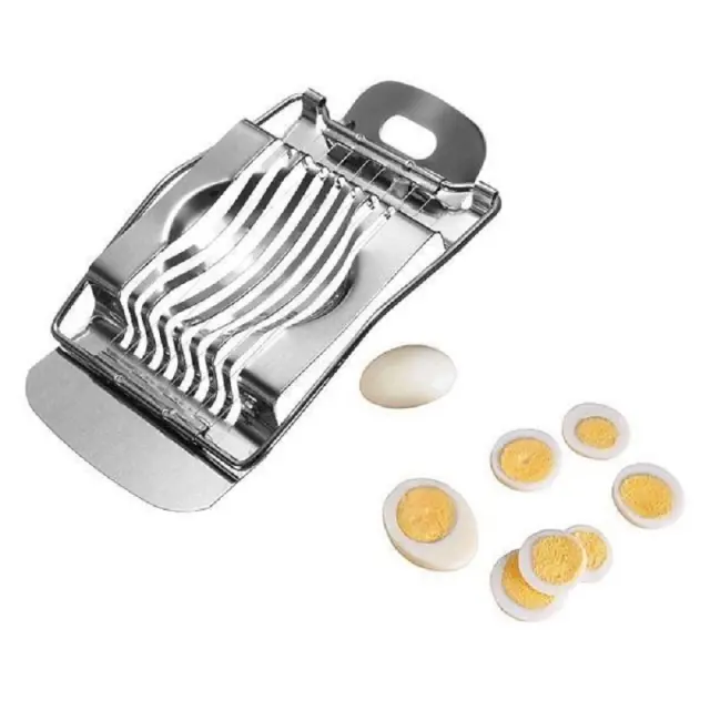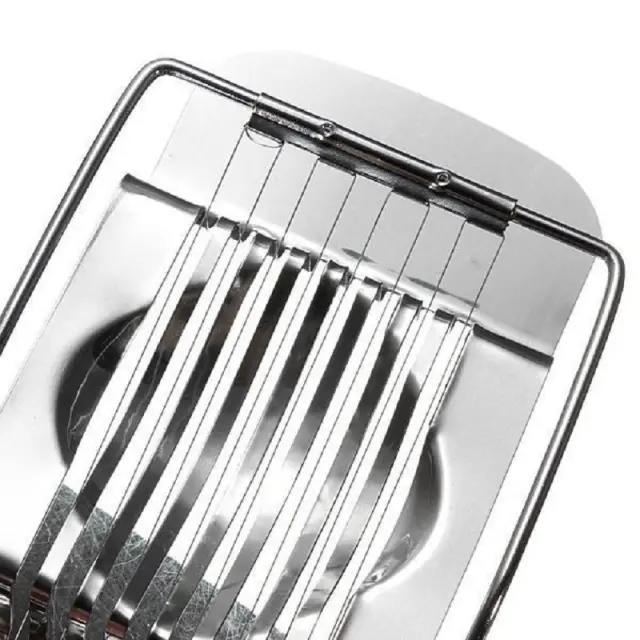 Robusten rezalnik za jajca iz nerjavečega jekla. Z delilnikom za jajca dobite lepe enakomerne jajčne rezine v hipu. Primeren tudi za rezanje druge mehke hrane, kot so banane, jagode, kivi in še veliko več.