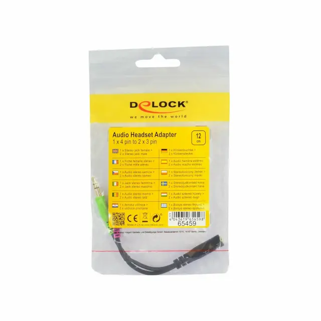 Avdio adapter za 4-pinski kombo audio+mikrofon vmesnik v dva 3-pinska stereo jack vmesnika